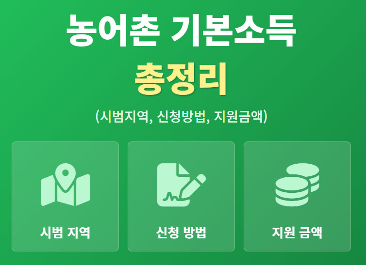 "내가 사는 지역도 매달 15만원씩 기본소득을 받을 수 있을까? 지역 소멸 위기에 맞선 정부의 새로운 실험, 농어촌 기본소득 시범사업의 모든 것을 알려드립니다!"
