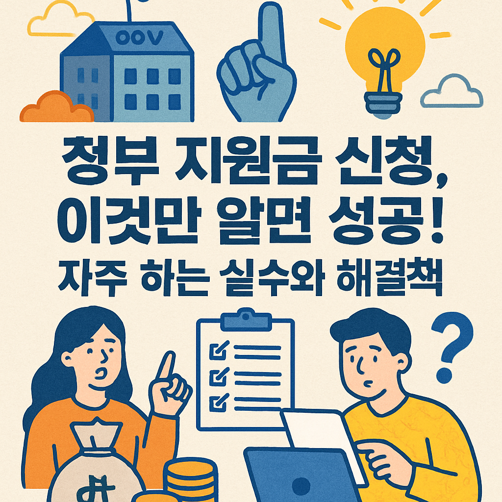 정부 지원금 신청, 이것만 알면 성공합니다! 지원금 탈락을 부르는 자주 하는 실수와 해결책을 총정리했습니다. 신청 기간, 자격 요건, 서류 미비 등 놓치기 쉬운 부분을 확인하고, '보조금24' 활용 팁으로 내가 받을 수 있는 혜택을 100% 챙기세요. 지금 바로 확인하고 숨은 지원금을 찾아보세요!