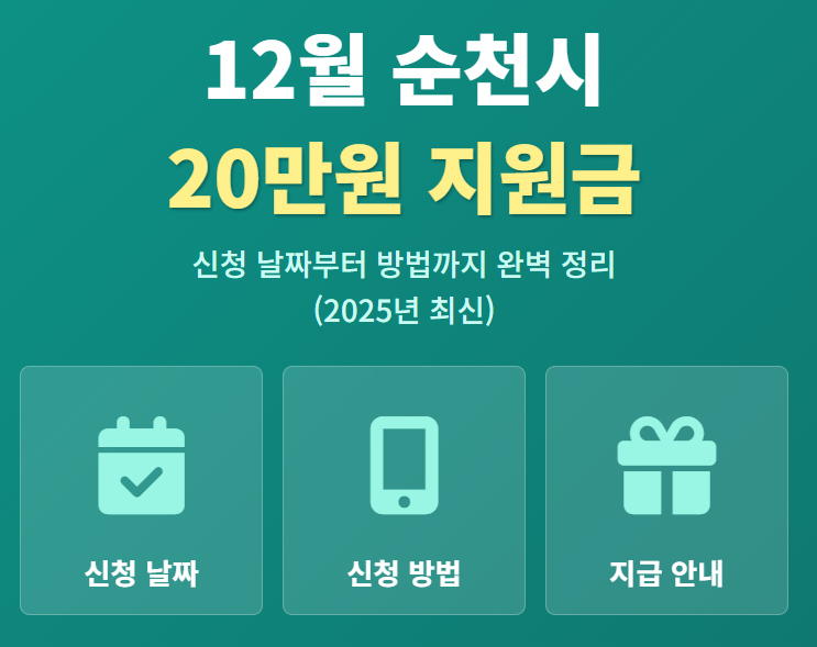 2025년 12월 8일, 전남 순천시가 모든 시민에게 1인당 20만 원의 민생회복지원금을 지급합니다! 소득·재산 상관없이 11월 7일 기준 시민이라면 누구나 받을 수 있는 이번 지원금의 온라인/오프라인 신청 방법, 지급일, 그리고 사용처까지 완벽하게 정리했습니다. 순천시민이라면 놓치지 말고 확인하세요.